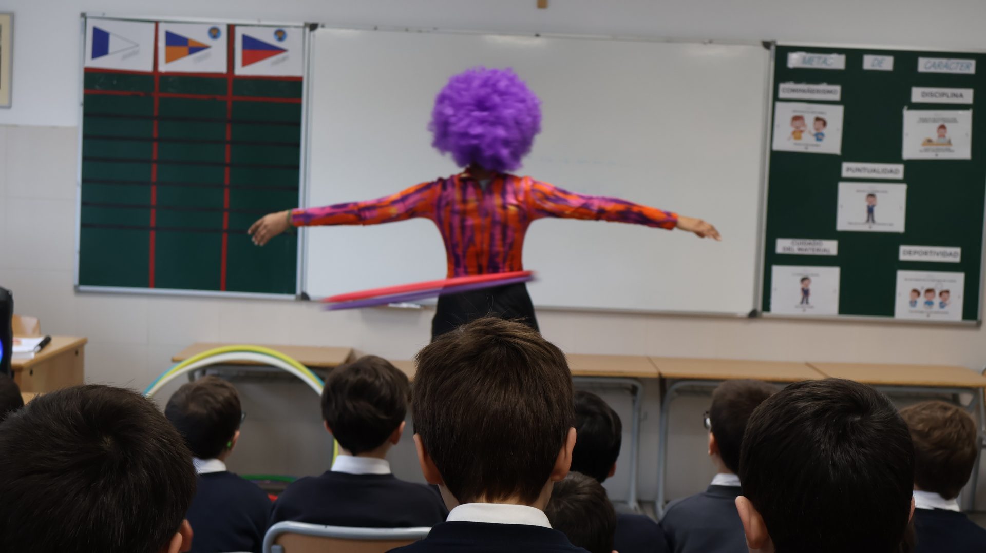 La mañana comenzó con un espectáculo íntegramente en inglés que ayudó a los alumnos a sumergirse en el idioma a través del humor, la interacción y la participación constante.